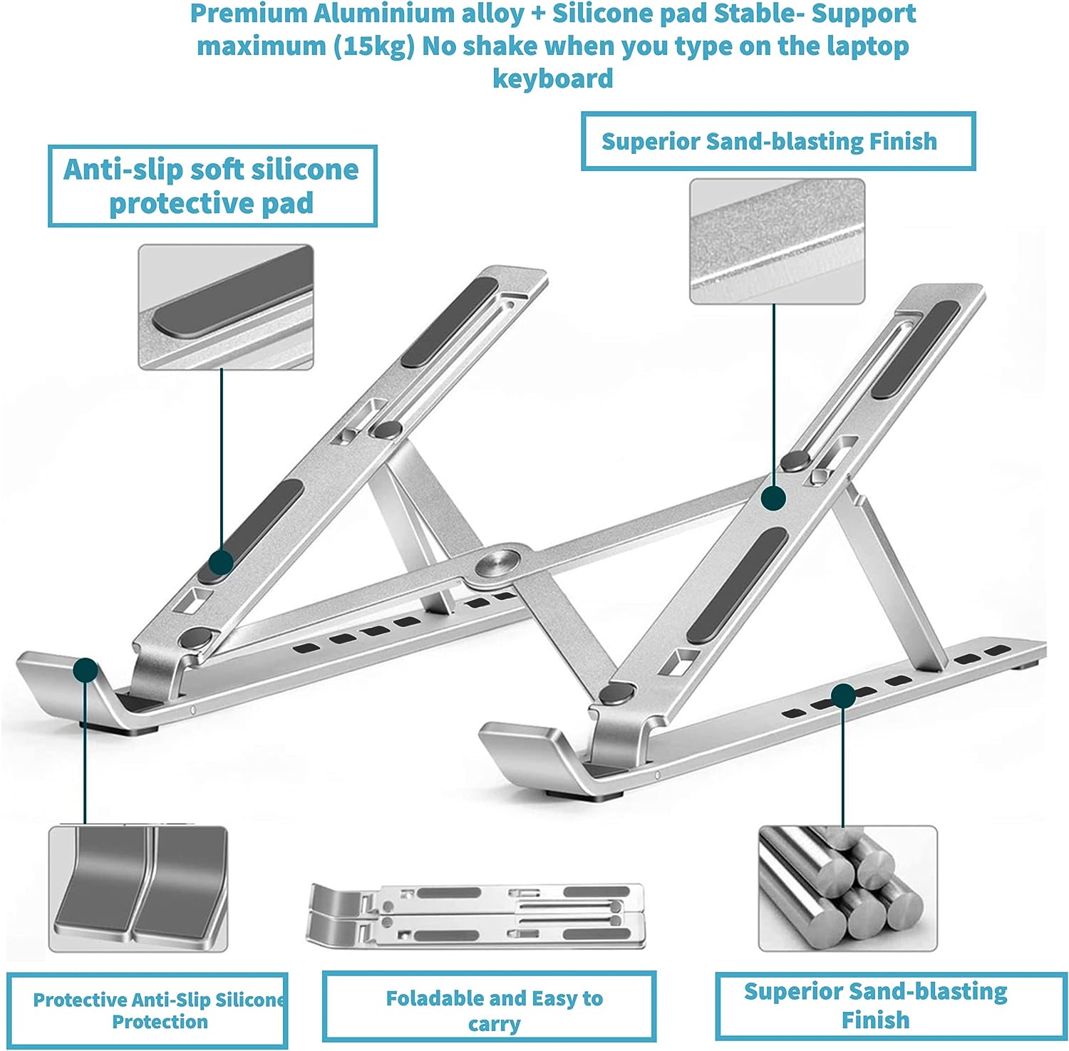 Adjustable Laptop Stand, Portable Aluminium Laptop Riser Laptop Holder for Desk, Foldable Ventilated Cooling Computer Support Stand for Apple MacBook...