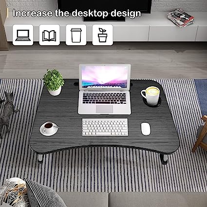 High Quality Material - The foldable laptop table is made of medium density fiberboard (MDF) and round aluminum alloy tube frame. It has an ergonomic curved desk design that is sturdy and durable. The laptop bed stand is very light and easy to carry, allowing you to easily complete work on the bed, sofa or floor.