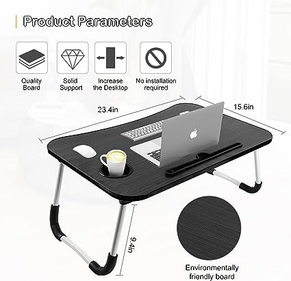 Multiple Uses - The foldable laptop desk does not need to be installed and can be used directly when opened. Product size: 23.6 inch x 15.5 inch x 10.4 inch. The laptop portable desk is very practical, you can put it on the bed, sofa, or on the floor, when you go out camping, you can also bring it, can be used as a small picnic table.